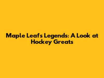 Maple Leafs Legends: A Look At Hockey Greats