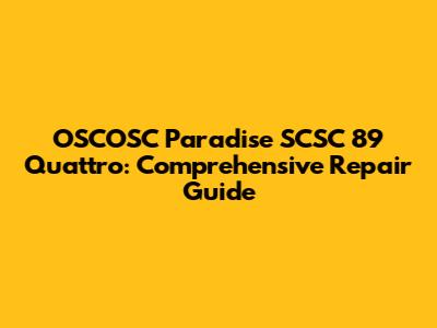 OSCOSC Paradise SCSC 89 Quattro: Comprehensive Repair Guide