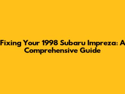 Fixing Your 1998 Subaru Impreza: A Comprehensive Guide