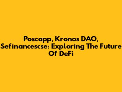 Poscapp, Kronos DAO, Sefinancescse: Exploring The Future Of DeFi
