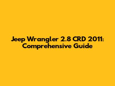 Jeep Wrangler 2.8 CRD 2011: Comprehensive Guide