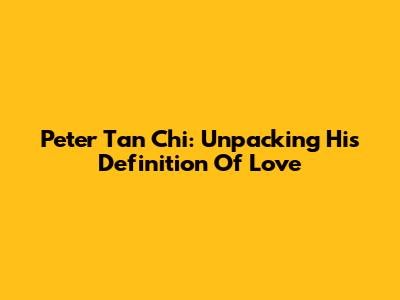 Peter Tan Chi: Unpacking His Definition Of Love