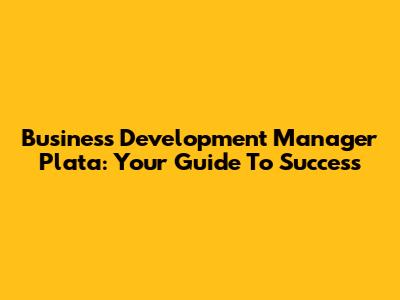 Business Development Manager Plata: Your Guide To Success