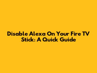 Disable Alexa On Your Fire TV Stick: A Quick Guide