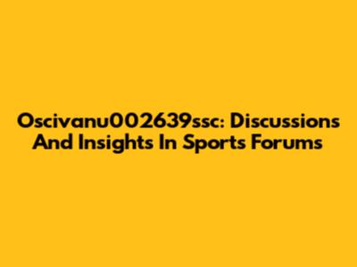 Oscivanu002639ssc: Discussions And Insights In Sports Forums