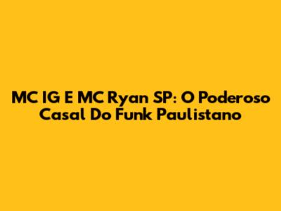 MC IG E MC Ryan SP: O Poderoso Casal Do Funk Paulistano