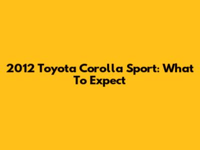 2012 Toyota Corolla Sport: What To Expect