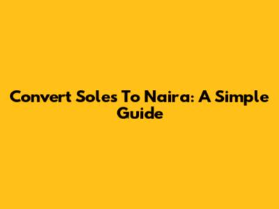 Convert Soles To Naira: A Simple Guide