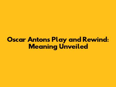 Oscar Anton's 'Play And Rewind': Meaning Unveiled