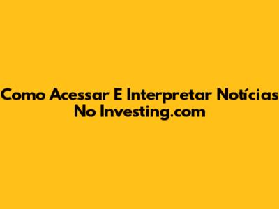 Como Acessar E Interpretar Notícias No Investing.com