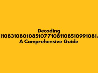 Decoding I10831080108510771081108510991081: A Comprehensive Guide
