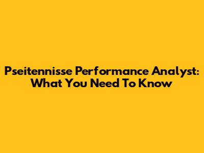 Pseitennisse Performance Analyst: What You Need To Know