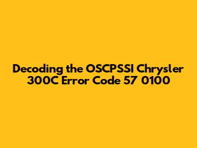 Hey guys! Ever stared blankly at your Chrysler 300C's dashboard, watching an error code pop up and wondering what on earth it means? Well, you're not alone. Specifically, let's dive into the mystery of the OSCPSSI Chrysler 300C error code 57 0100. This isn't just some random jumble of numbers and letters; it's your car trying to tell you something important. Understanding what this code signifies can save you time, money, and a whole lot of stress. So, buckle up as we break down everything you need to know about this pesky error.