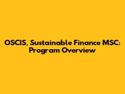 OSCIS, Sustainable Finance MSC: Program Overview