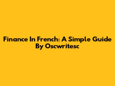 Finance In French: A Simple Guide By Oscwritesc