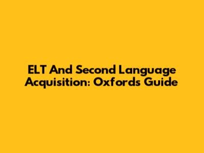 ELT And Second Language Acquisition: Oxford's Guide