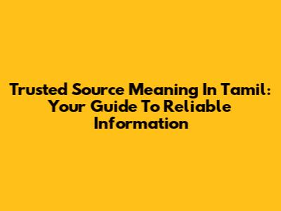 Trusted Source Meaning In Tamil: Your Guide To Reliable Information