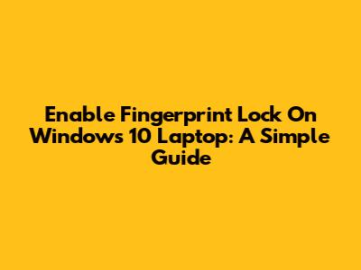 Enable Fingerprint Lock On Windows 10 Laptop: A Simple Guide