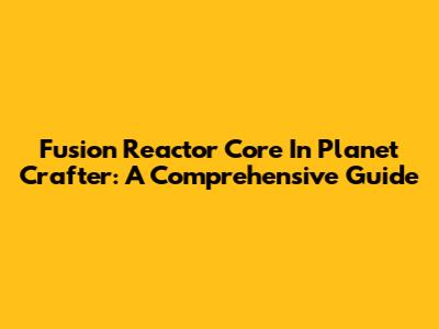 Fusion Reactor Core In Planet Crafter: A Comprehensive Guide