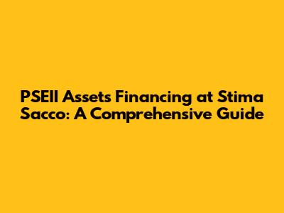 Stima Sacco's commitment to providing accessible and affordable financing makes them a great option for those seeking to acquire PSEII assets. They are known for their straightforward loan application processes and flexible repayment terms.