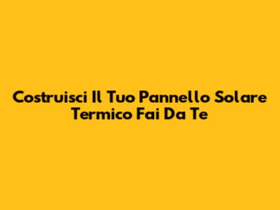 Costruisci Il Tuo Pannello Solare Termico Fai Da Te