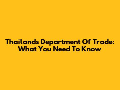 Thailand's Department Of Trade: What You Need To Know