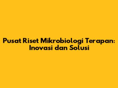 Pusat Riset Mikrobiologi Terapan: Inovasi Dan Solusi