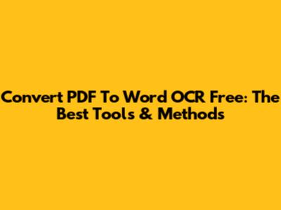 Convert PDF To Word OCR Free: The Best Tools & Methods
