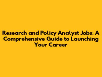 Research And Policy Analyst: Career Guide