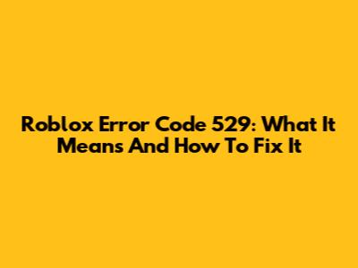 Roblox Error Code 529: What It Means And How To Fix It