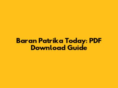 Baran Patrika Today: PDF Download Guide
