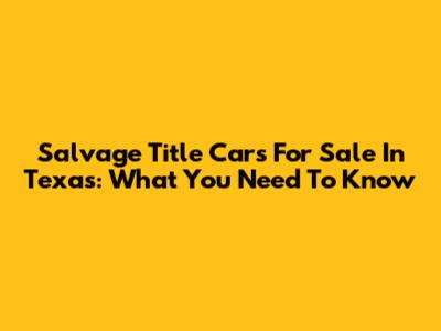 Salvage Title Cars For Sale In Texas: What You Need To Know