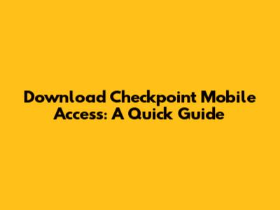Download Checkpoint Mobile Access: A Quick Guide