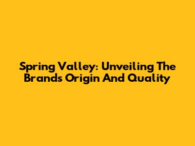 Spring Valley: Unveiling The Brand's Origin And Quality
