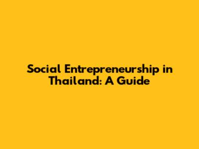 Social Entrepreneurship In Thailand: A Guide