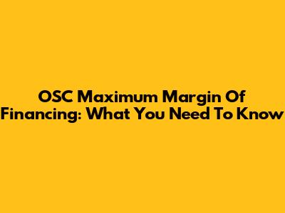 OSC Maximum Margin Of Financing: What You Need To Know