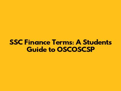 Decoding OSCOSCSP and Finance Terminology