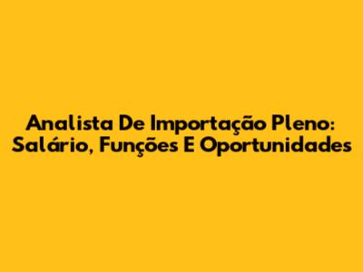 Analista De Importação Pleno: Salário, Funções E Oportunidades