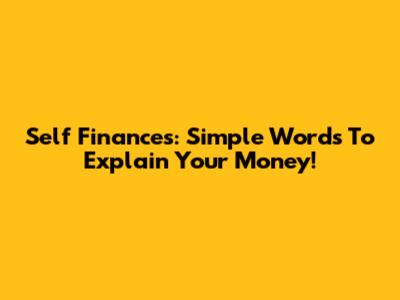 Self Finances: Simple Words To Explain Your Money!