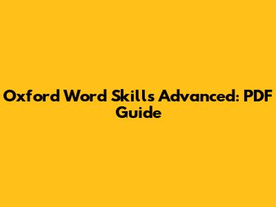 Oxford Word Skills Advanced: PDF Guide