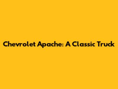 Chevrolet Apache: A Classic Truck