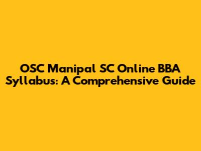 OSC Manipal SC Online BBA Syllabus: A Comprehensive Guide