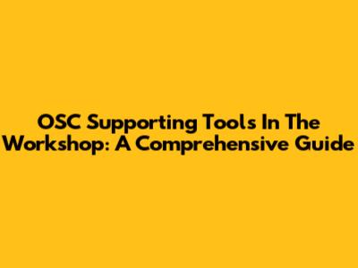 OSC Supporting Tools In The Workshop: A Comprehensive Guide