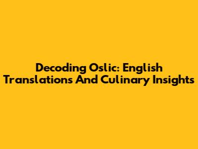 Decoding Oslic: English Translations And Culinary Insights