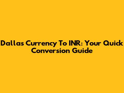 Dallas Currency To INR: Your Quick Conversion Guide