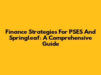 Finance Strategies For PSES And Springleaf: A Comprehensive Guide