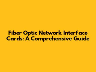 Fiber Optic Network Interface Cards: A Comprehensive Guide