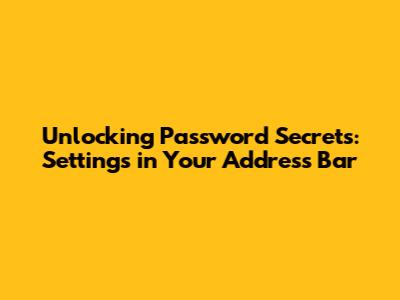 Hey guys, ever wondered about the settings passwords and how they relate to that handy address bar we all use daily? You know, that little space up top where you type in websites? Well, buckle up, because we're diving deep into the world of settings, passwords, and the surprising role your address bar plays. We're going to break down how these three things connect, how you can use them safely, and what sneaky stuff you need to watch out for. Trust me, it's more interesting than it sounds! We'll explore the hidden nooks and crannies where your passwords might be lurking, learn how to manage them like a pro, and ensure your online life stays secure. So, grab a coffee (or your favorite beverage), get comfy, and let's unravel this techy mystery together. This journey will cover everything from the basic principles to advanced techniques, equipping you with the knowledge to navigate the digital landscape with confidence. No prior technical knowledge is needed; we'll cover everything in a way that’s easy to understand. We'll be talking about browsers, security, and the simple settings that can make a big difference. Think of it as a crash course in digital self-defense – because, in today's world, it's more important than ever. Ready to become a password pro? Let's go!