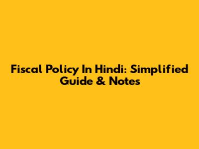 Fiscal Policy In Hindi: Simplified Guide & Notes