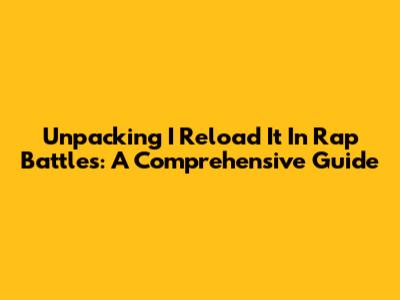 Unpacking 'I Reload It' In Rap Battles: A Comprehensive Guide